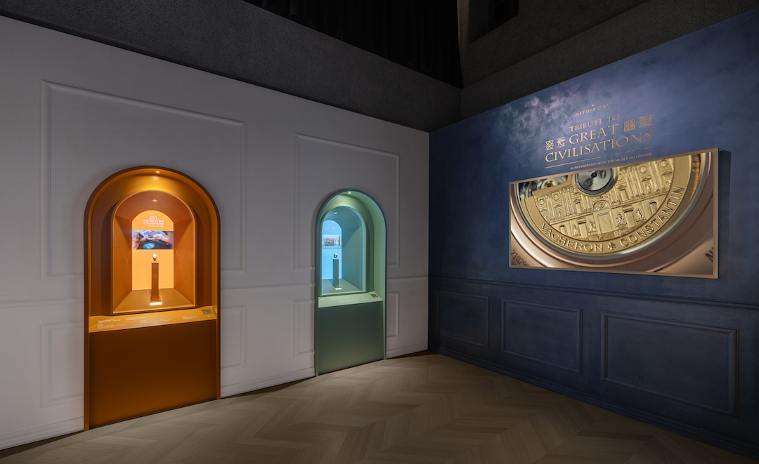 上海张园限时体验空间里的另一篇章——“携手卢浮宫”,江诗丹顿展示了与卢浮宫联袂创作的“致敬伟大文明”腕表,是品牌从世界文化汲取精华的又一佳作。